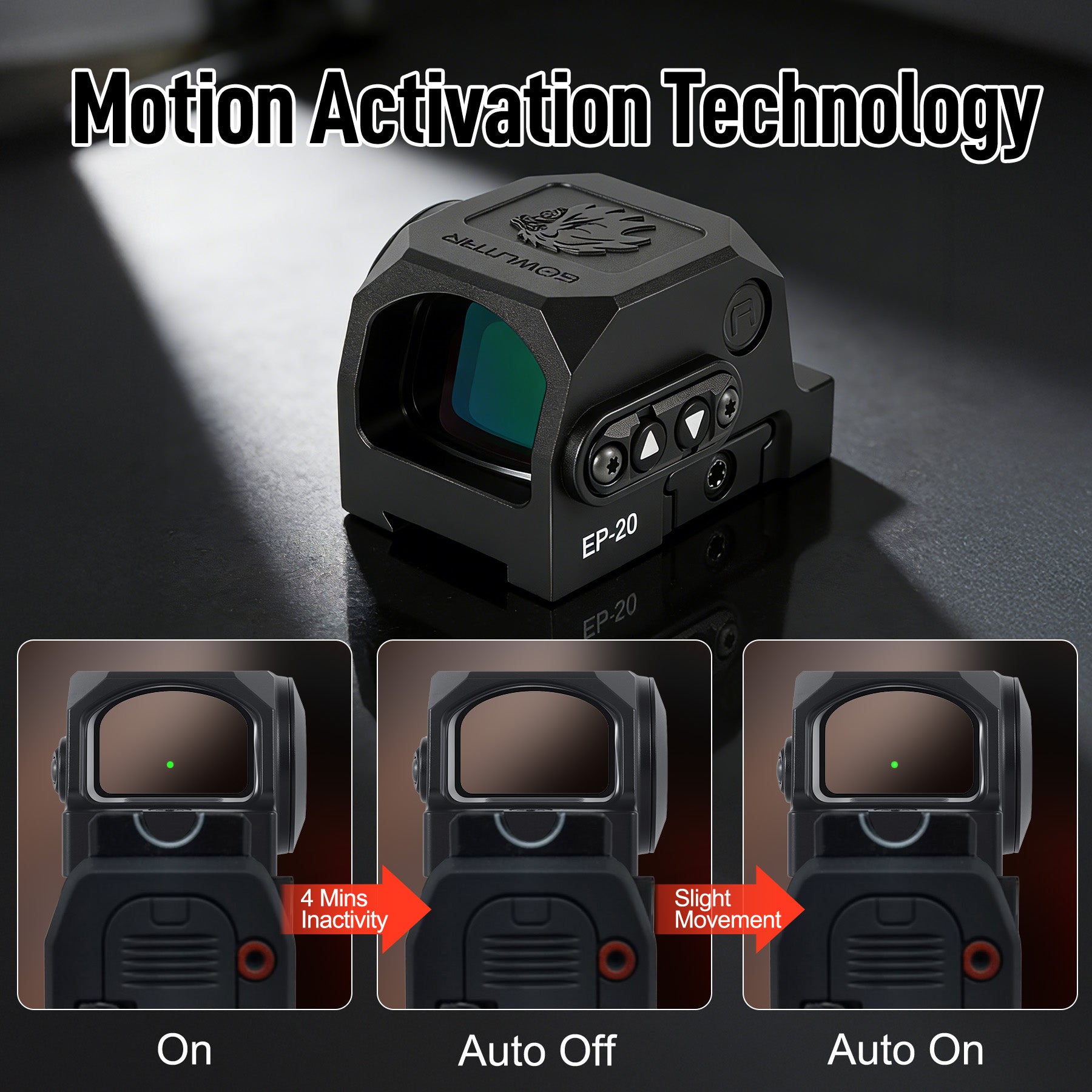 GOWUTAR EP-20 Enclosed Green Dot Sight for ACRO Footprint - Motion Awake - 3 MOA Closed Emitter Reflex Sights (Green Dot)