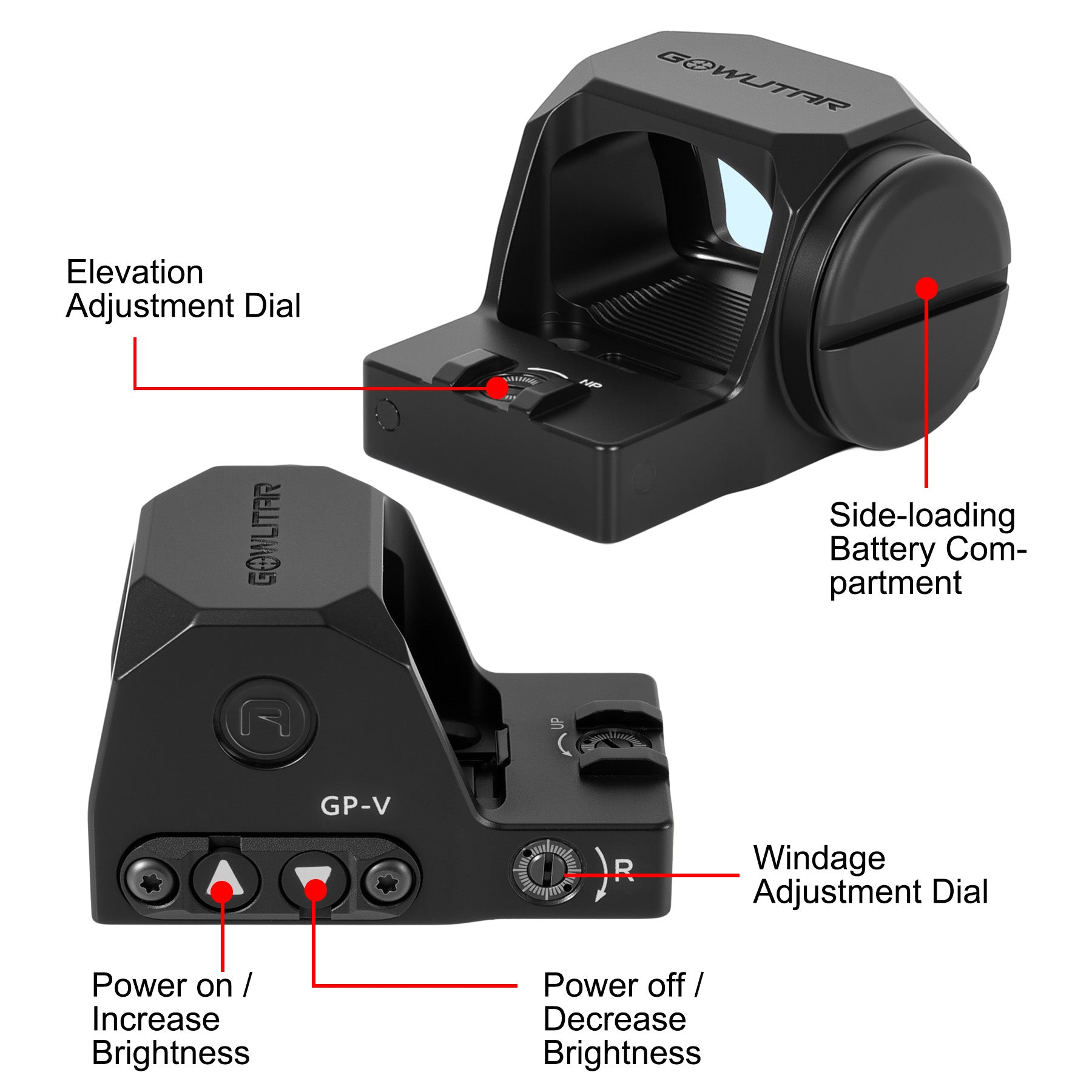 Built for the Doctor/Noblex footprint, the GP-V open red dot sight is engineered from durable 7075-T6 aluminum with a hard-anodized finish. It seamlessly transitions from tactical operations to competitive shooting, home defense, and hunting.