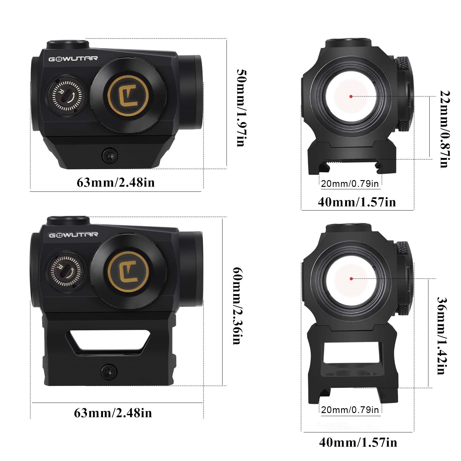 GOWUTAR HHC-B22 Red Dot Sight for Rifles - 3 MOA Compact Shake Awake Reflex Optic for Picatinny Rails, 1x20mm Durable Rifle Scope with Absolute Co-Witnes Riser & Low Mount